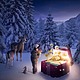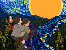 月夜下,刚砍完柴的哥哥背着弟弟回家去。