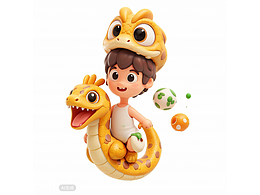 立体卡通蛇宝宝蛇年生肖ip形象厉害3d插画