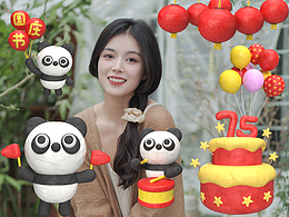 国庆假期快乐C4D小贴纸