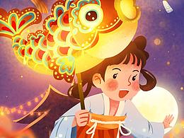元宵节到啦,正月十五是新年的第一个月圆之夜,元宵节有闹花灯、猜灯谜、耍龙灯、吃元宵等等丰富多彩的民俗活动。插画师吴泽凯为我们带来了元宵节主题插画创作心得分享 ,让我们一起来闹元宵,绘团圆,动动小手把精美的花灯、白白胖胖的元宵都放进画面中吧~愿大家虎年事事圆满,好事连连~