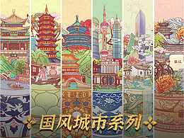 国风城市系列插画——北京上海苏州大理丽江长沙