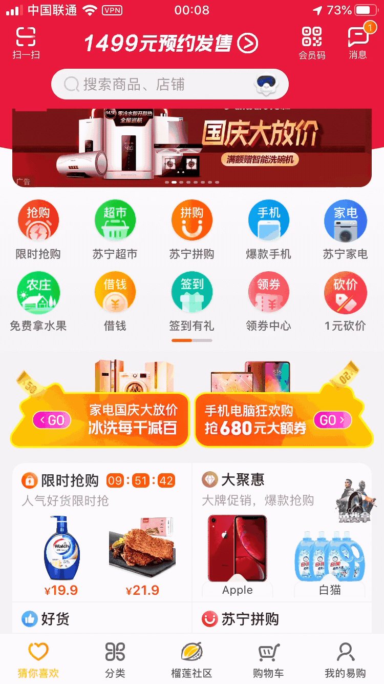 视觉型动效主要通过动态效果吸引视觉、进行营销活动或者用来传达品牌调性或者进行情感化设计,这类动效大部分都不是必须的,但加上之后可以有效提高营销活动转化或者提高用户使用产品时的愉悦度。如下面这个界面里的banner动效和浮窗动效。