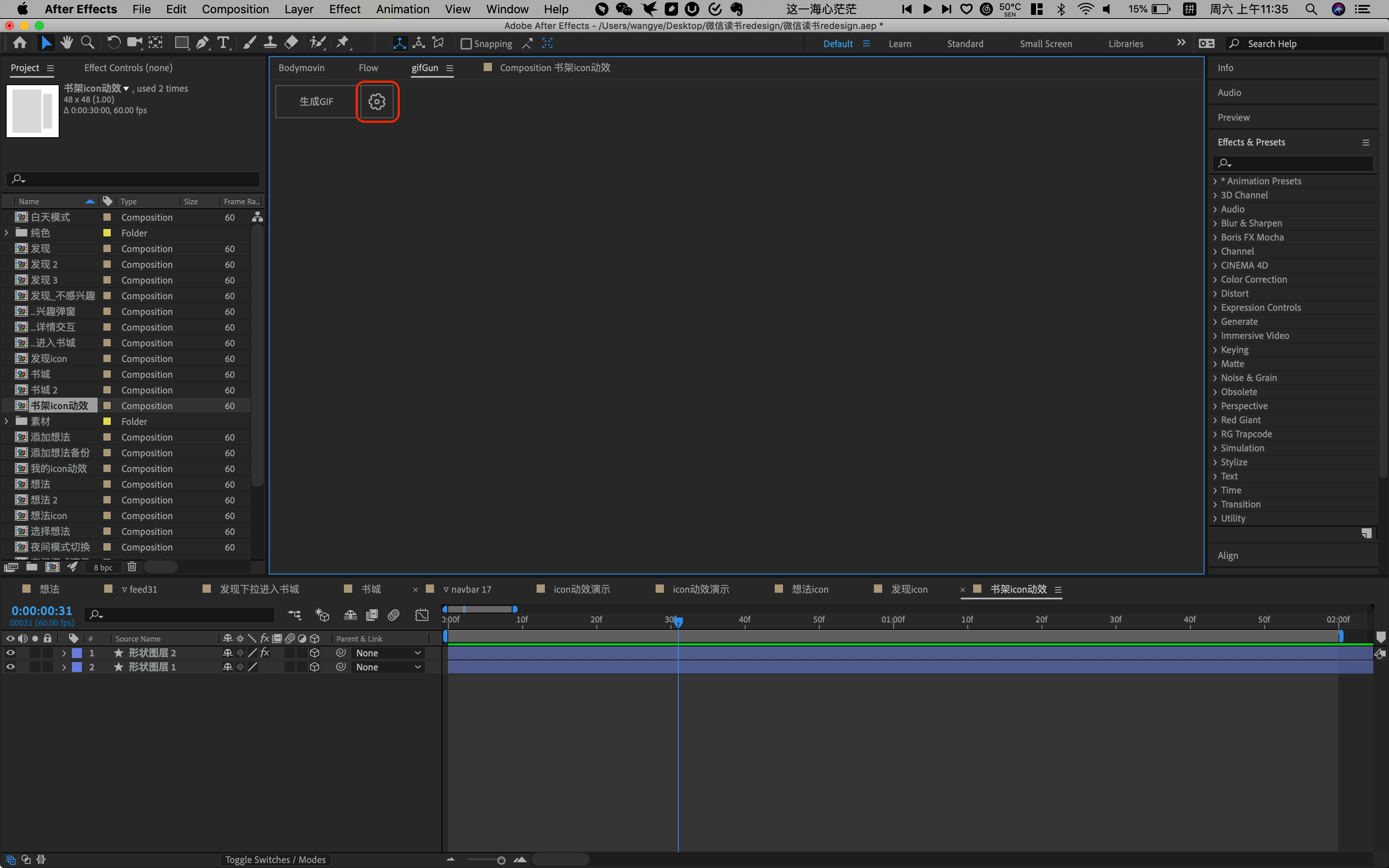 1.安装好ae及gifgun插件后