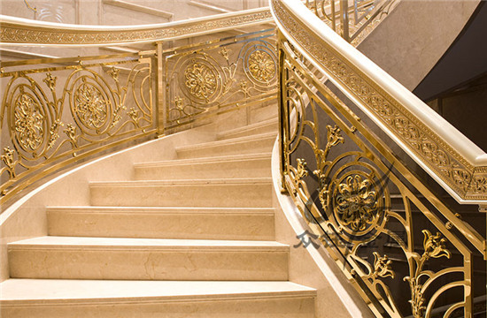 铝板雕刻立体花型K金弧形楼梯护栏奢华,大气,高级的装饰品——铝板雕琢护栏!酒店装饰 豪宅家装,私人会所精装!