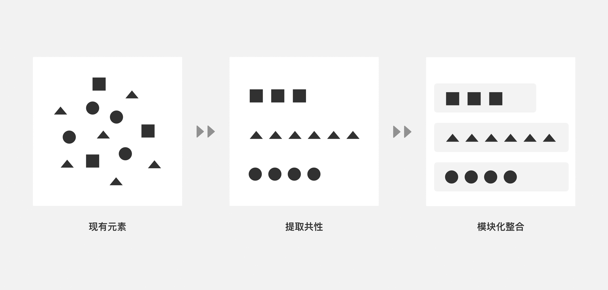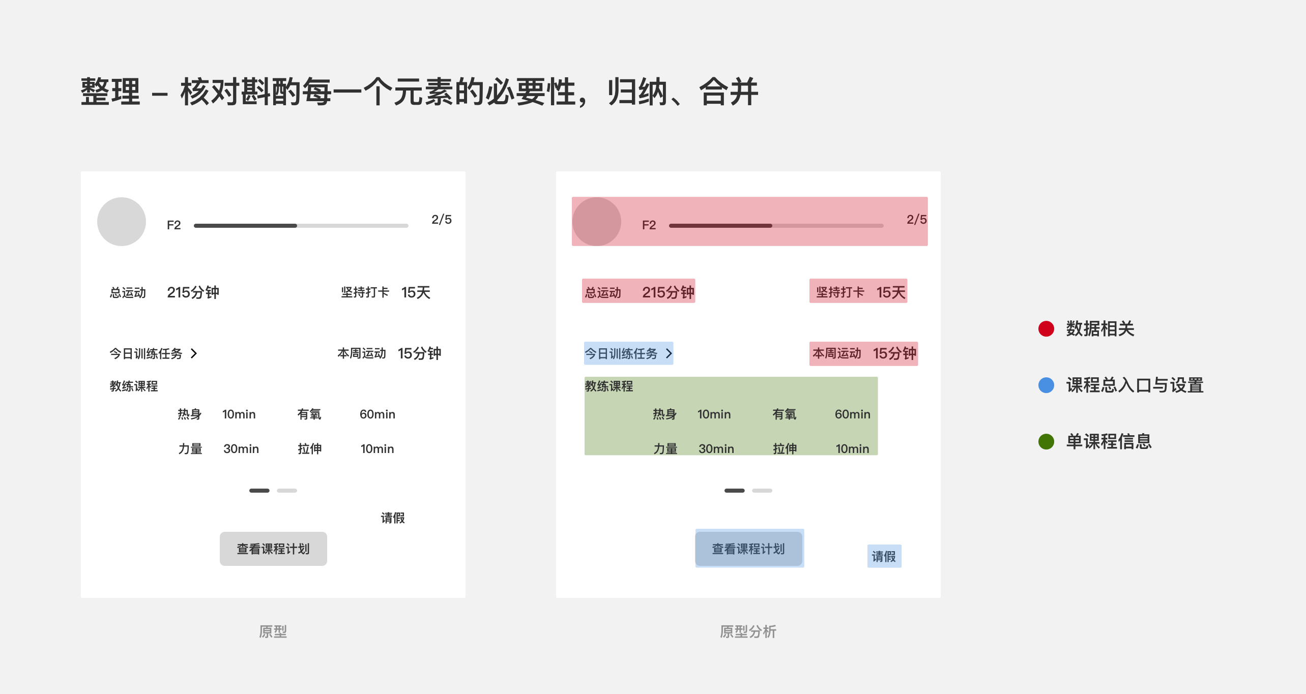 2.整理 - 核对斟酌每一个元素的必要性,归纳、合并;