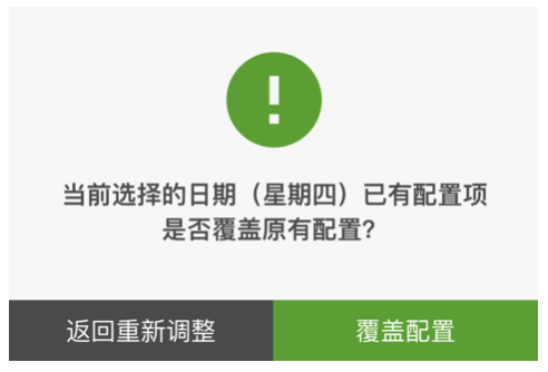 若出现新选择的日期已有配置项的情况,则出现以下提示: