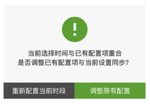 若出现当前配置项与已有配置项相同,仅有时间不同的情况,则询问用户是否进行相应调整。