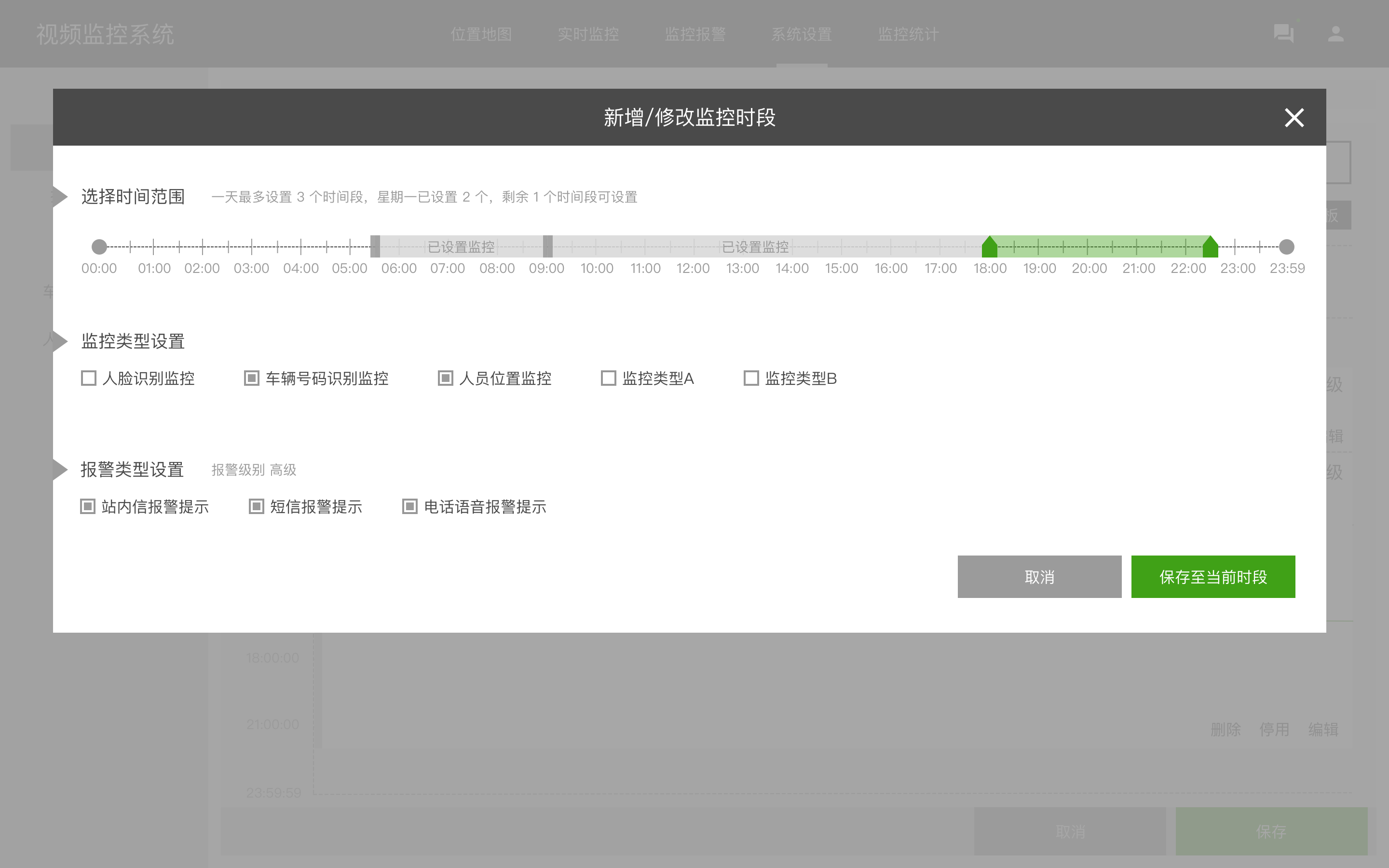 「监控时段设置」二级界面 - 新增/修改监控时段