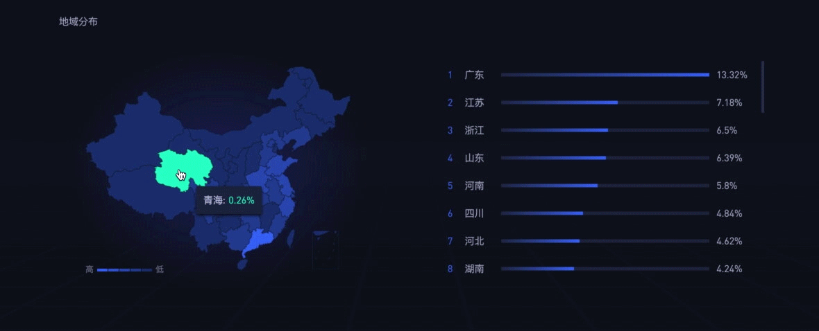 图表之间,统一交互态设计。对比GIF图一、图二,图一上网时间分布左右内容关联性较弱,所以采用hover查看,方便用户快速浏览信息。图二左右内容关联性较强,所以才用点击联动的交互状态。