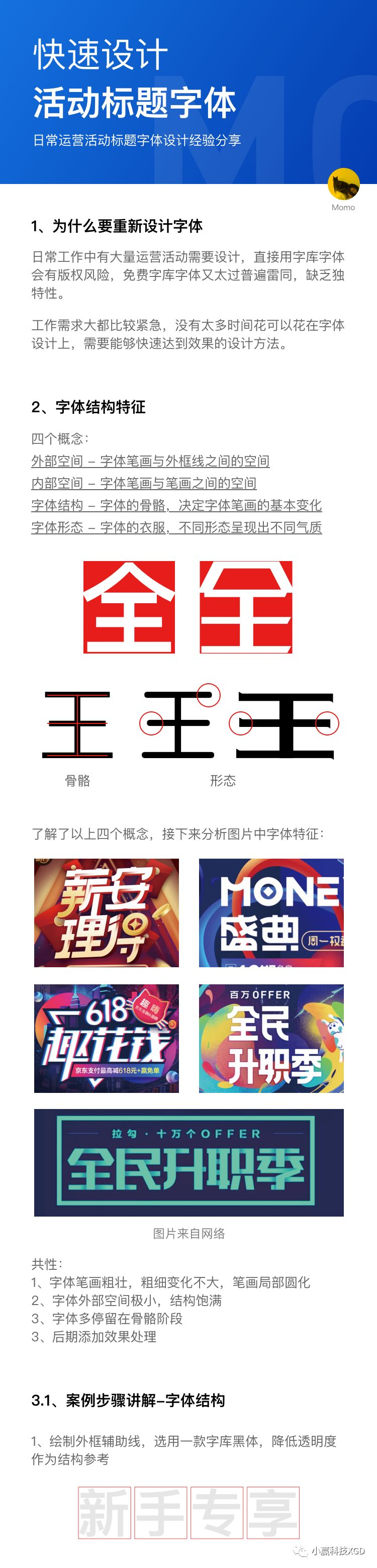 日常工作中有大量运营活动需要设计,直接用字库字体会有版权风险,免费字库字体又太过普遍雷同,缺乏独特性。工作需求大都比较紧急,没有太多时间花可以花在字体设计上,需要能够快速达到效果的设计方法。