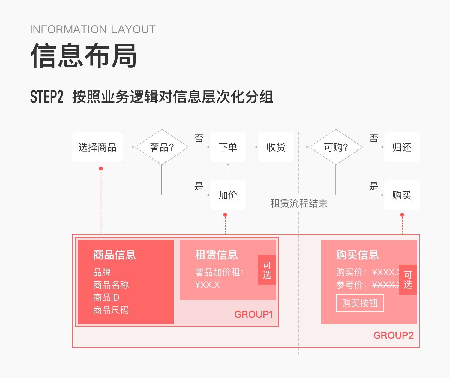 如果脱离业务来看,这样的分法看上去也是比较合理的,因为租赁和购买是对商品的两种看似平等的操作,且两项里都有价格,所以看上去这俩是可以归为一类的。
