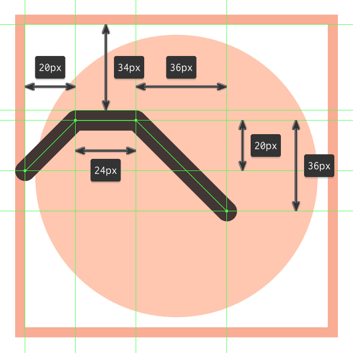 绘制24×24 px的圆,描边为 8 px(颜色填充为#3F3330)作为太阳,移动到图示位置。