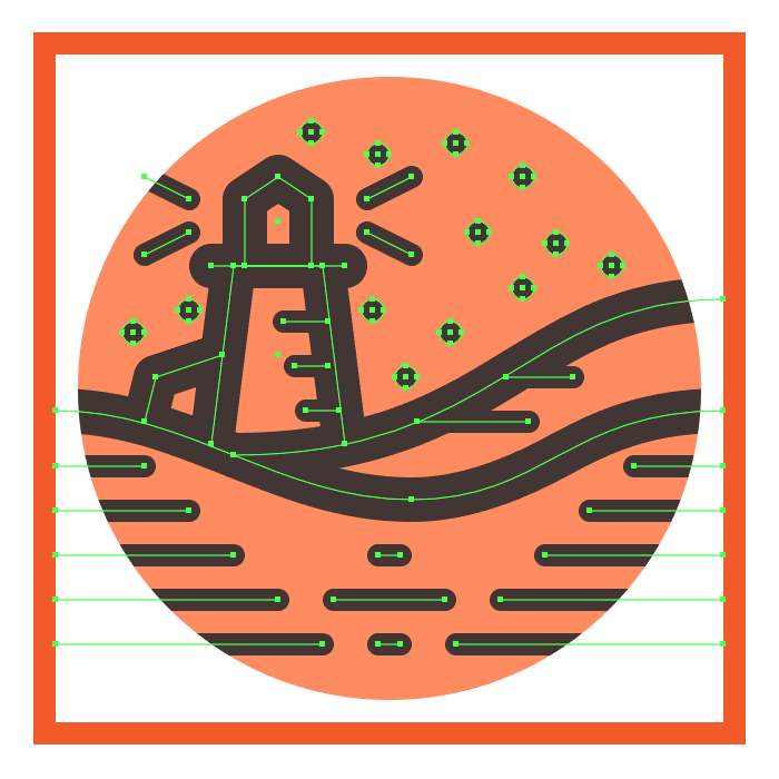 选中目前所有海浪、灯塔以及星星的组成形状,进行编组(Control + G),