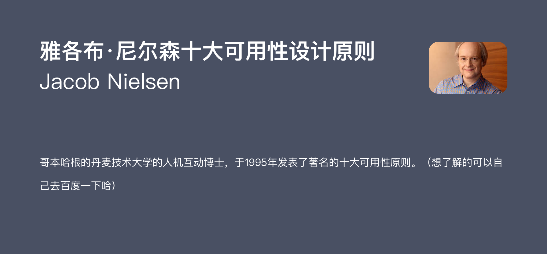 尼尔森的十大可用性原则是交互设计的基础性法则。如果错误,还望指正。