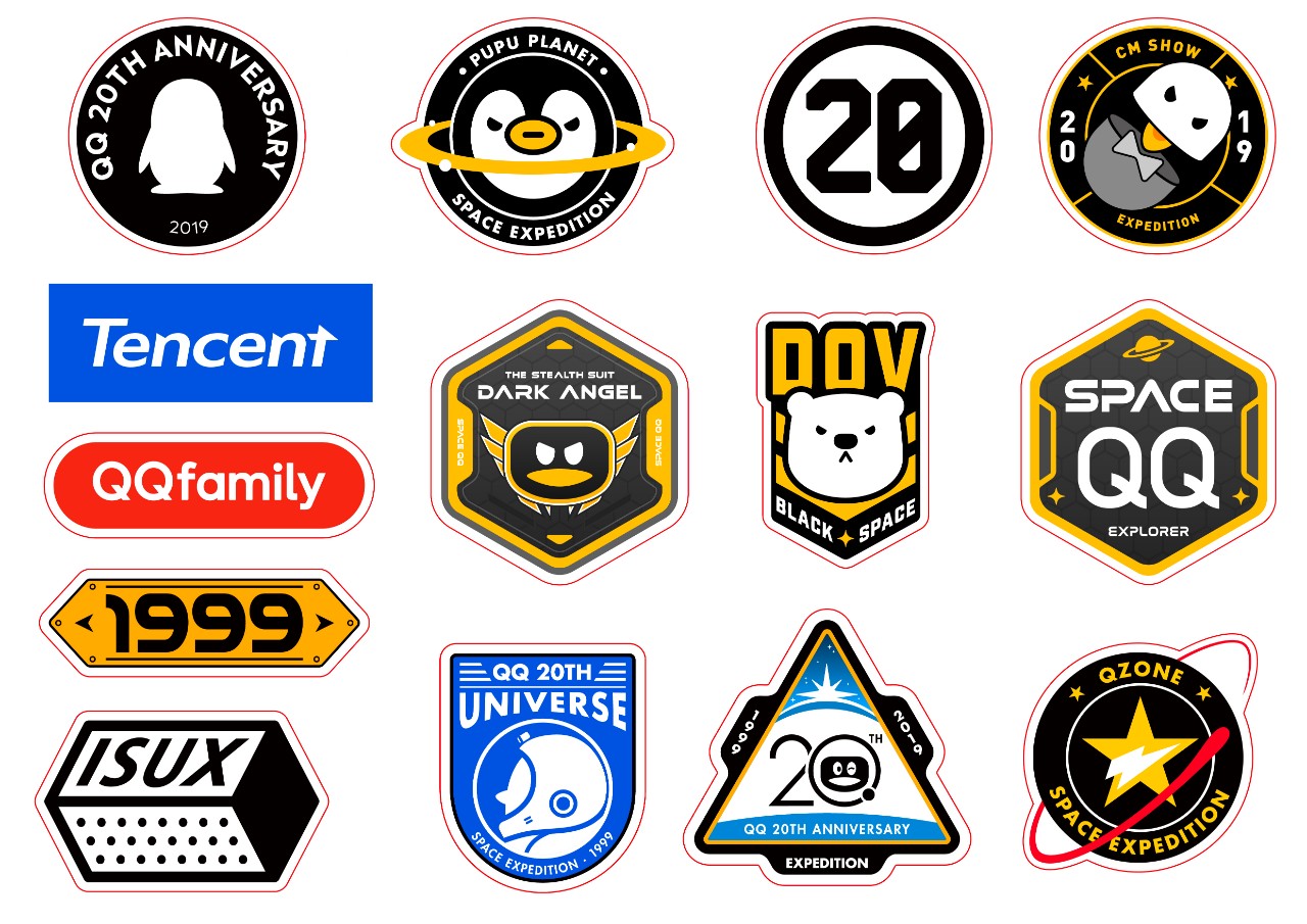 Space QQ系列潮流贴纸,融合了各个品牌logo和科幻机械图案元素,以这款宇宙冷科技装点物件,潮流有趣、个性爆棚。