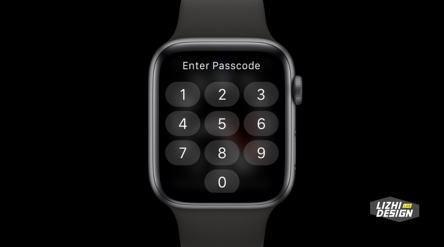 限于 Apple Watch 的硬件特性,屏幕的实际可点击区域非常小。都知道,在 iPhone 上的最小的点触面积是 44x44 points,换算为物理尺寸大约是 6.86 毫米。以 Apple Watch 自带的解锁的界面为例,我们可以看到,数字键盘已经几乎撑满整个屏幕,但每个实际上这里每个按钮的宽度大概只有 6.00 毫米,触摸区域比起 iPhone 的最低建议还要小。