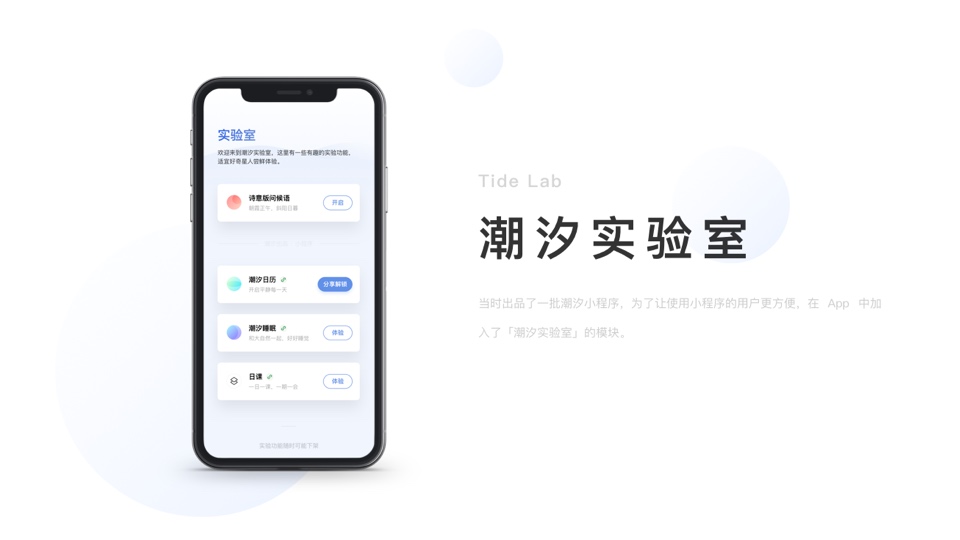 当时出品了一批潮汐小程序,为了让使用小程序的用户更方便,在 App 中加入了「潮汐实验室」的模块。