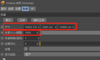 j. 使用OC自带的雾体积为场景添加烟雾效果,调整尺寸、体素大小、调整雾的密度值、吸收与散射颜色均为白色等参数: