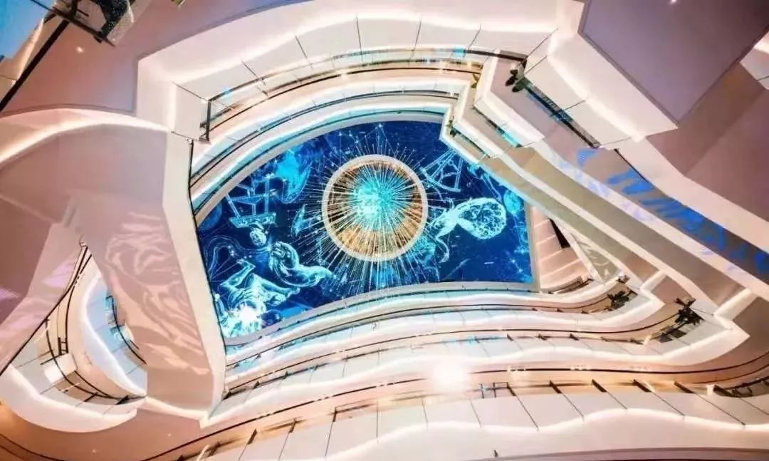 中庭的LED天幕不仅高达7层,还超大手笔选择了行业内精度及对比度*高的产品,以助于场景内容显示的更加流畅逼真。