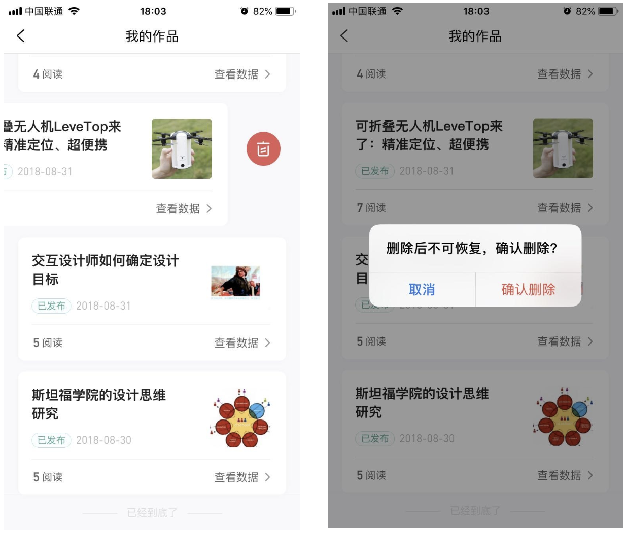2、藉用两个以上的动作必须依序执行才能完成的工作,在互联网产品中应用广泛,例如用户要删除一项列表且该列表无法恢复时,必须先点击删除按钮,再点击弹窗中确认按钮才能成功删除列表(如图示)。