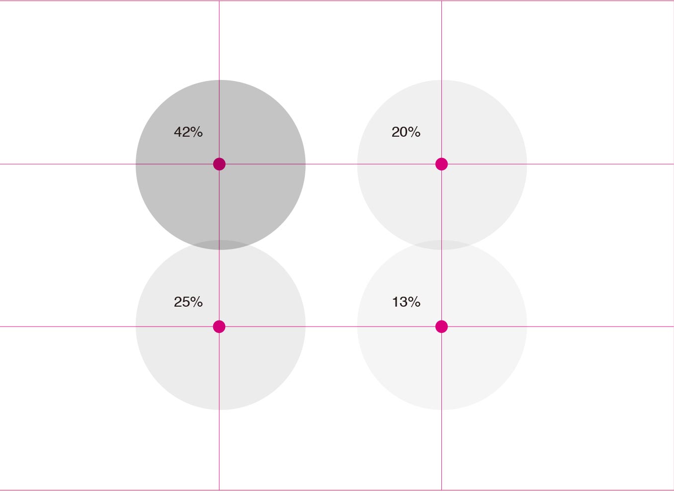 此圖說明三等分原則可以如何在排版或設計上創造熱點。如你所見,熱點位置與數學方法準確切分出的區域並不完全對應。