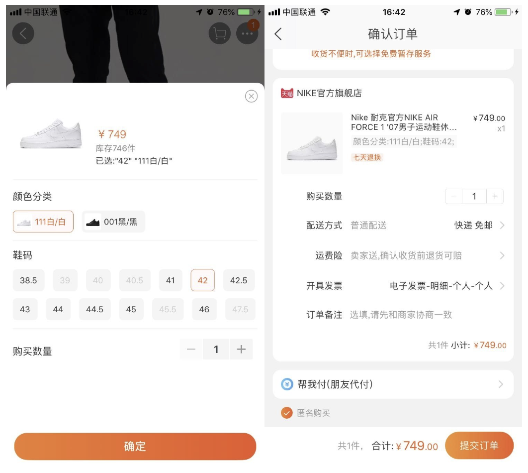 1、用淘宝购物时,在商品详情页选择商品颜色、尺码后,会进入到订单填写页,淘宝APP在订单填写页将用户选择的商品颜色、尺码及商品信息又显示出来,这样的设计,可以方便用户确认是否选对颜色、尺码,无需用户再返回商品详情页再确定一遍。