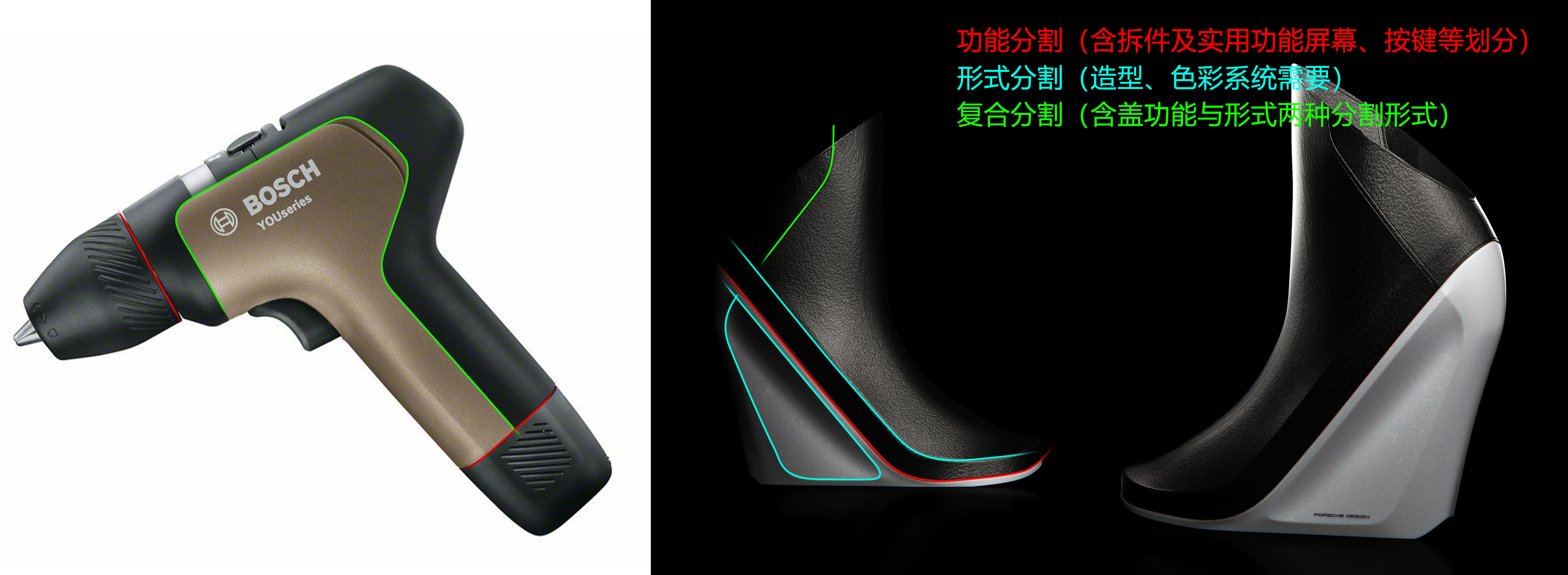 形式分割-为满足产品造型、色彩等美学上的系统思考而进行的分割方式;