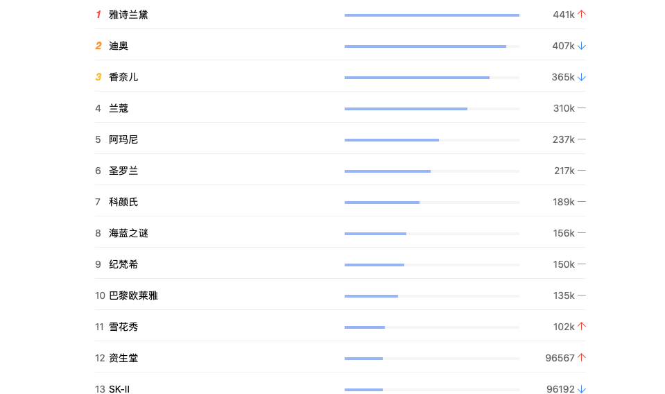 百度化妆品行业搜索指数排名