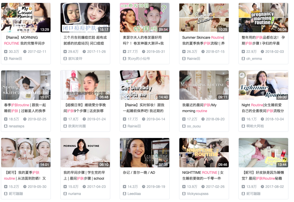 bilibili上的护肤routine视频