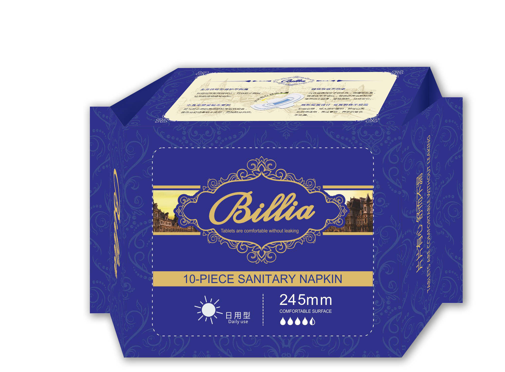 包装设计由贵气的紫蓝色为主色调,给人一种优雅、醒目的感觉,能从众多产品中脱颖而出,配以金色的花纹及文字搭配,给一种稳重、大气的享受。贴合人性化的撕开口设计,既便捷又卫生。