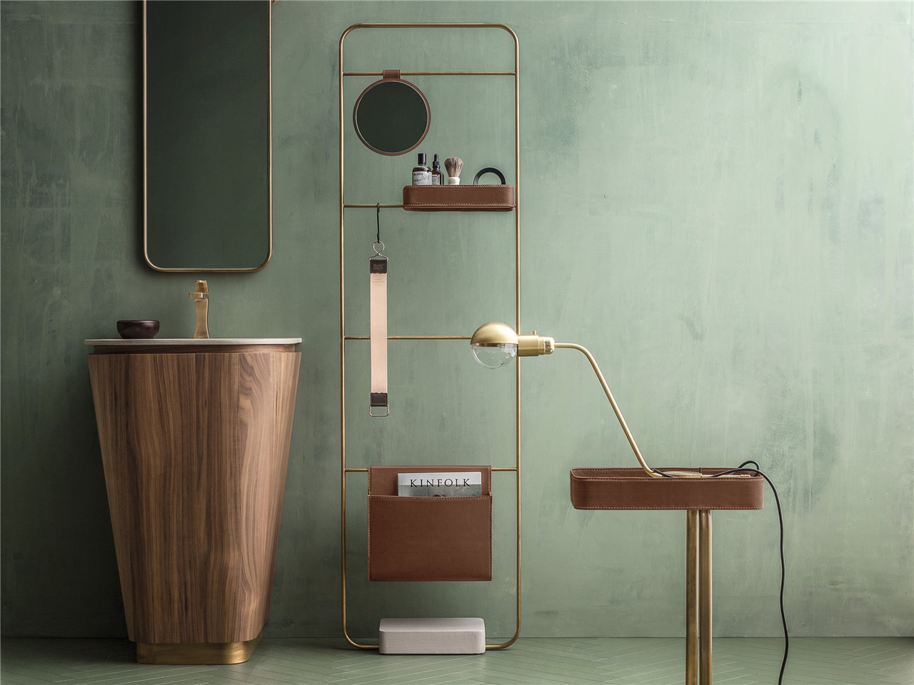 Suede系列浴室家具的精髓在于柔软的形态设计,在其蜿蜒的线条抚慰下,如同母亲的怀抱,给人一种安心的感觉。该系列产品的珍贵和温暖以核桃木的纹理来表达,并由青铜金属和皮革材料精制而成。易美居选材认为Suede系列的多功能性还表现在能够将不同功能的空间连接起来,以现代艺术风格给家带来非一般的现代感。