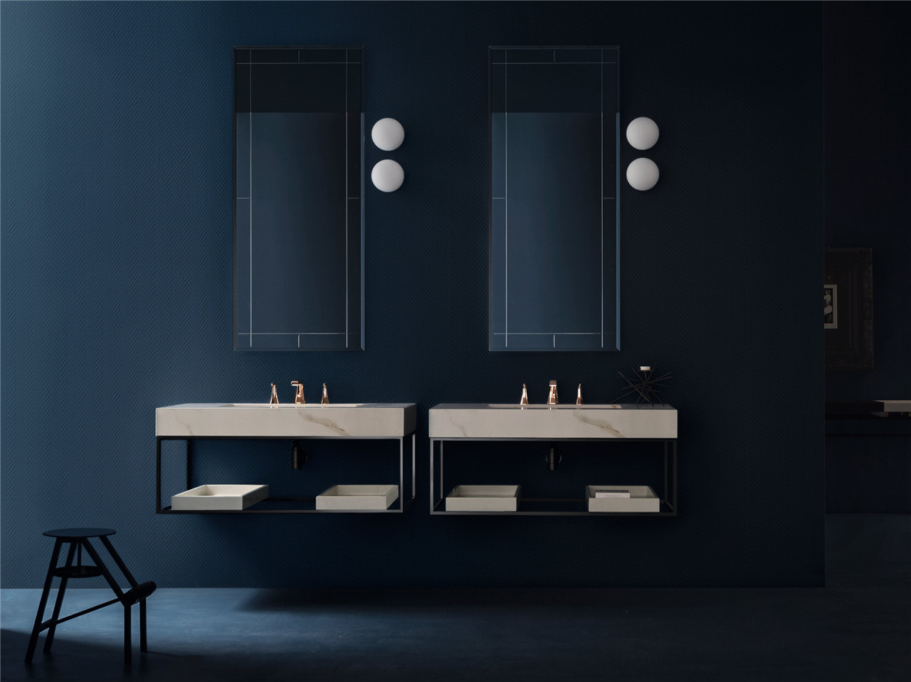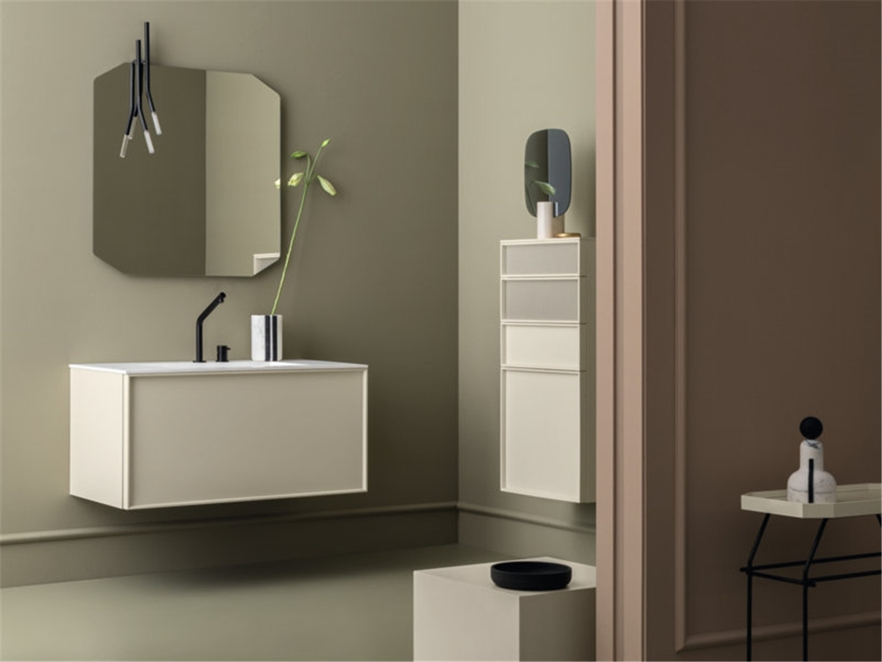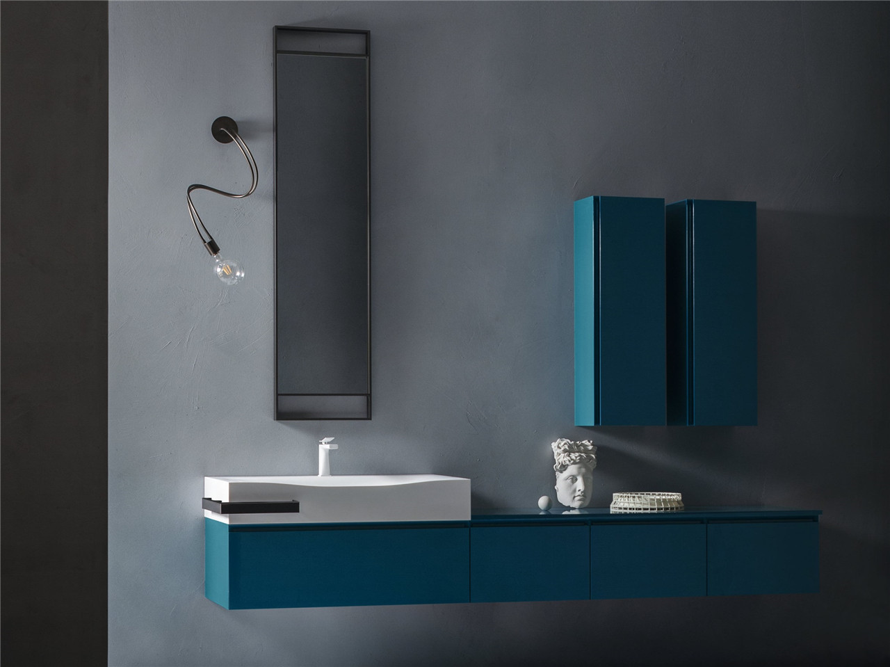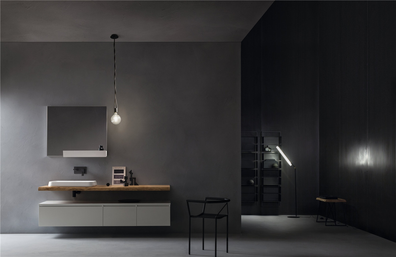 Eden系列浴室家具以干净的线条设计为特征,浴室家具的柜门与板面之间呈45度角连接,并配以灵活而蜿蜒伸展的珍贵灯饰作为装饰。易美居选材发现Eden的产品还带有明显的工业风格,以金属元素和特定的饰面颜色来体现,通过和谐的搭配方式满足用户的不同口味。