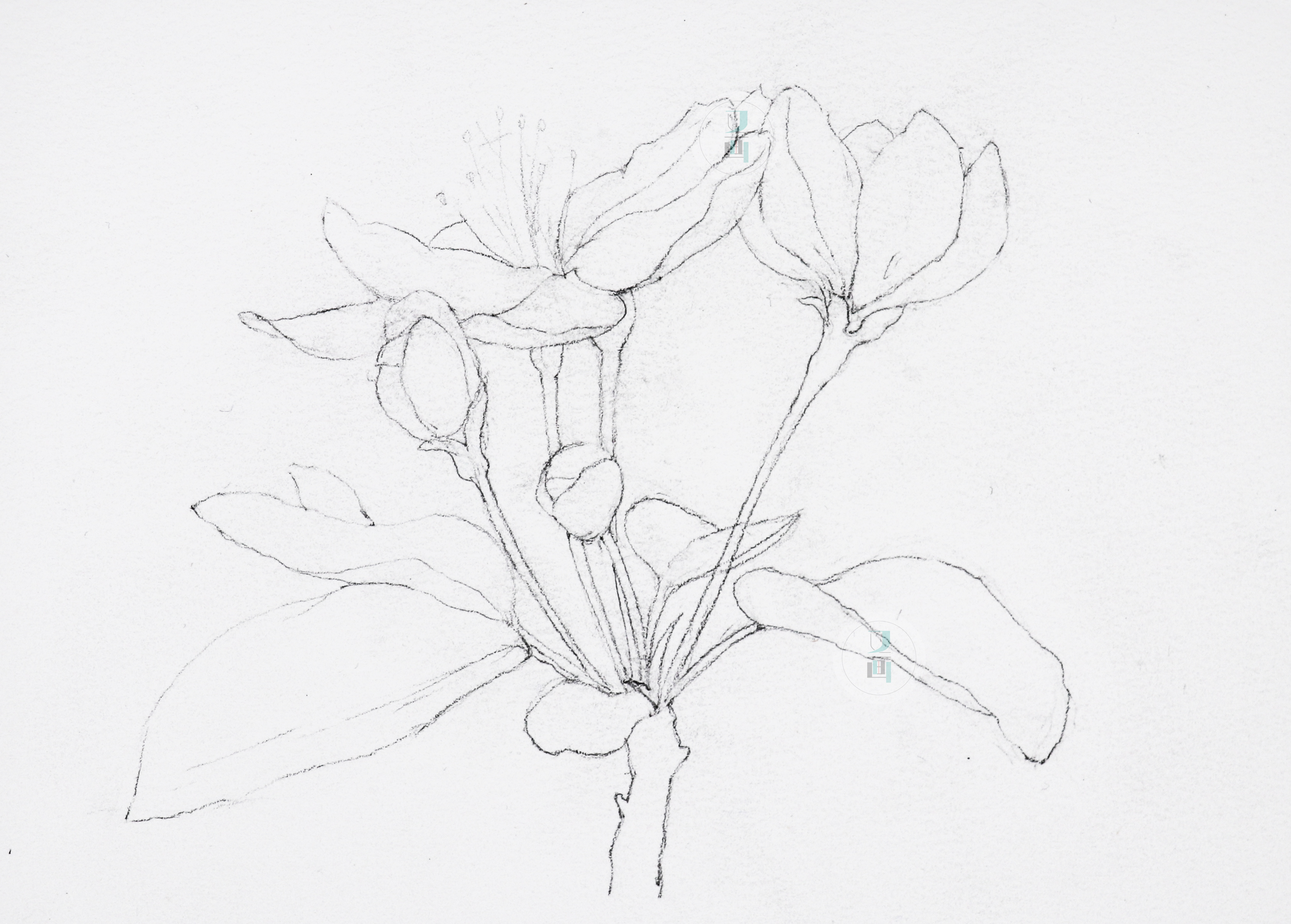 接下来,我们就可以直接从单个花朵开始起型了,想要表现好花朵的灵动性,线条也是不容小觑的哦~太直的线条会显得花朵很“呆板”,断断续续的线条会显得画面“不肯定”。所以在原图的基础上,通过自己的观察理解,多一些自主意识,会让画面看上去更好看。