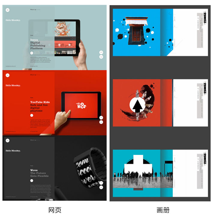 再看到这个画册同时,或许脑子里能够感受的已经不仅仅是一个画册?而是一个网页 或者一个UI界面的形式?积累的这些设计中共生的这部分核心知识,而不是一眼只盯着自己的领域,网页设计只看网页作品,平面设计师只看平面作品,这些其实都是收益很小的事情。