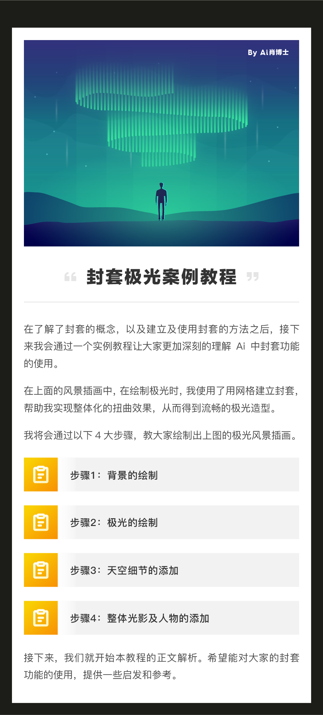 本文介绍了Ai中的封套扭曲及其基本使用方法,并附带封套扭曲极光的教程及源文件,阅读需要20分钟。