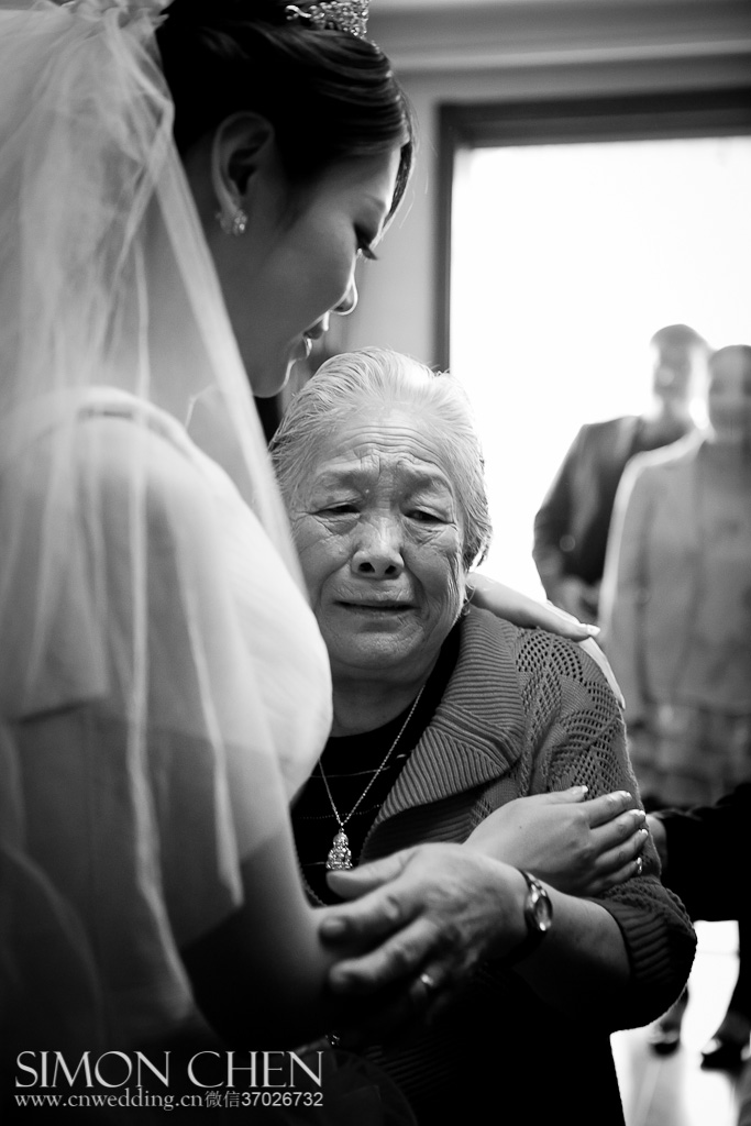 Simon:最大的不同就是,我所坚持的这种“新闻纪实婚礼摄影”风格,注重的是诚实和感动。着重于采用抓拍的手法,及时拍摄人物的情感故事和感动,而不是仅仅的被摆拍出来的表面漂亮、大气、时尚之类的形式,而是人物本身内在的感动和情感内容。所以一定要抓拍住发自人物内心诚实、自然的内涵!