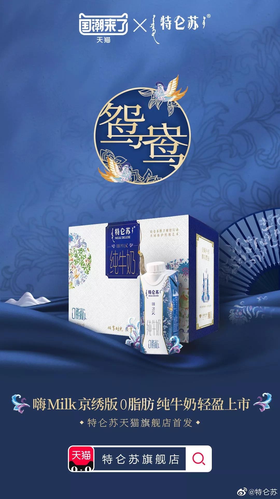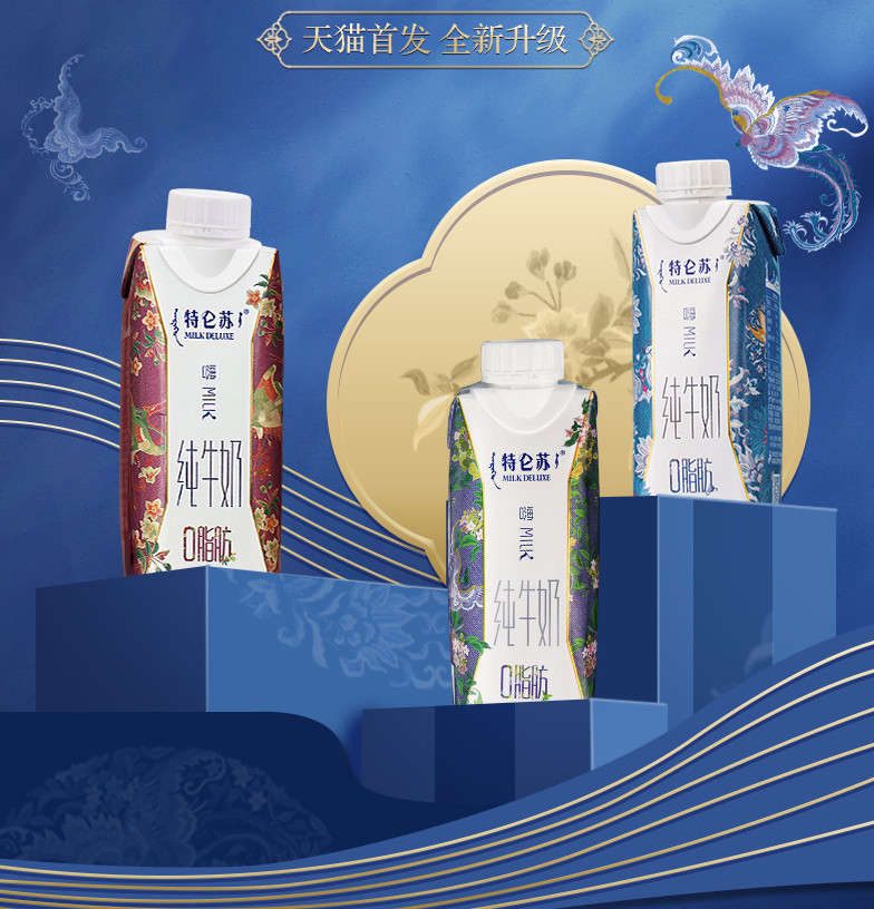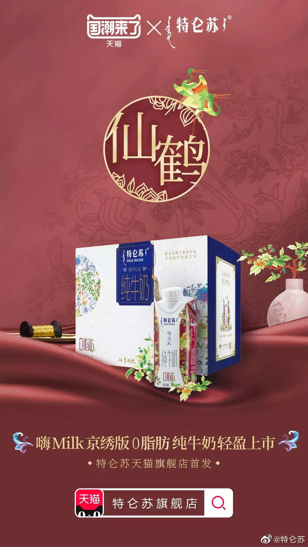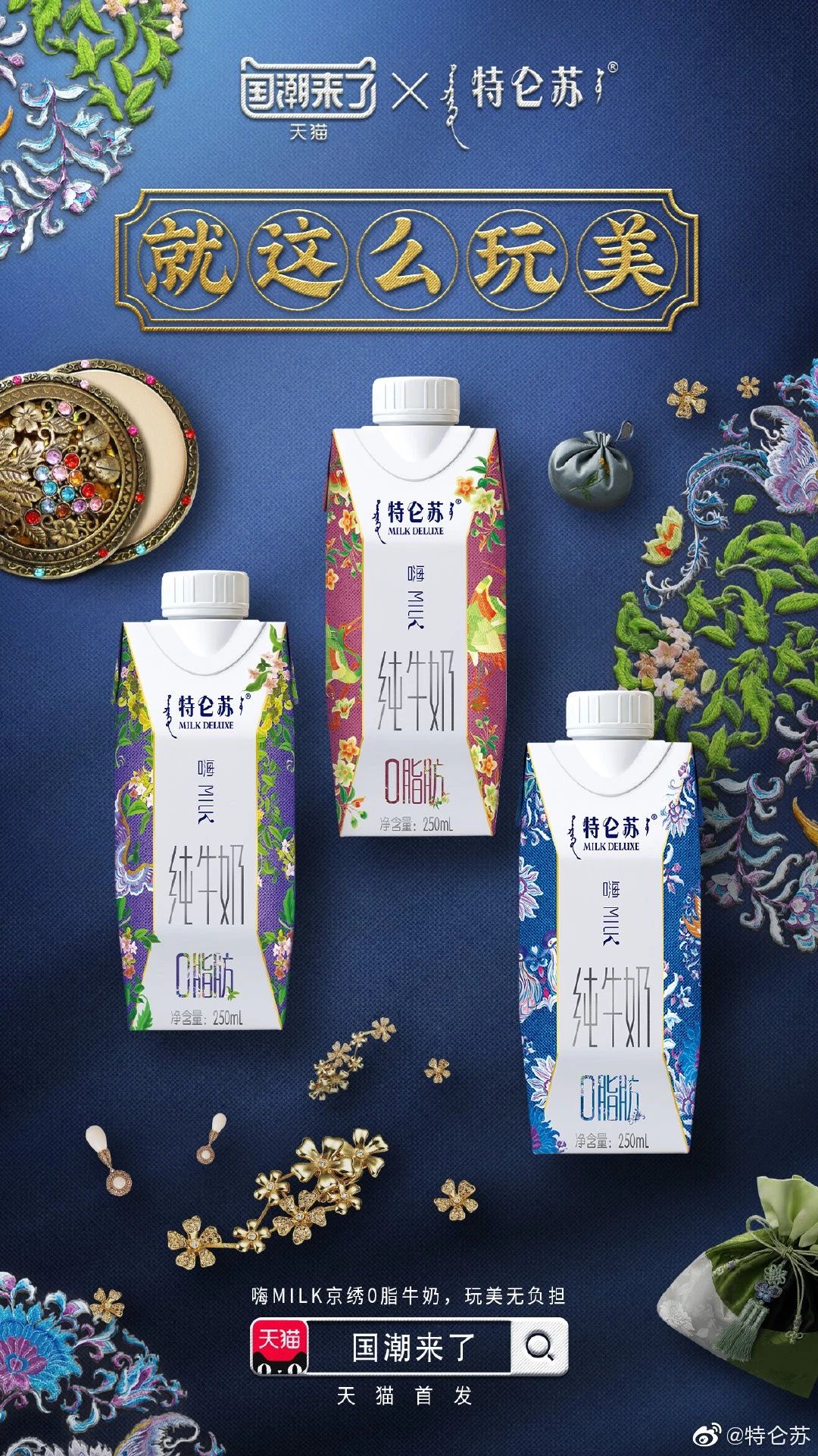 最近发现高质纯牛奶品牌-特仑苏,也玩起国潮风!就在七月份,特仑苏发布了全新国潮风包装设计!联合天猫#国潮来了#新出了一款嗨Milk京绣版0脂肪纯牛奶包装。