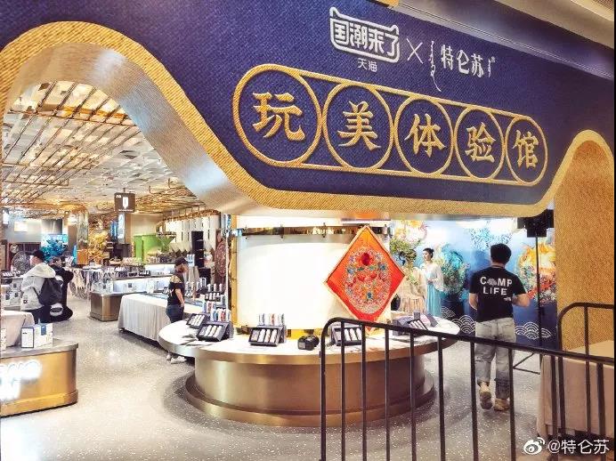 并打造了玩美体验馆,馆外门头里面延续了天猫品牌的轮廓。用淡雅紫和金黄色相搭配,呈现出一种古典、韵味、雅致的形象。