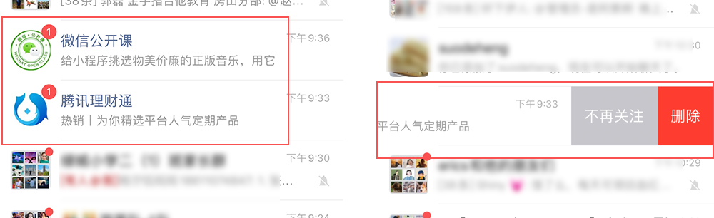 微信设置了个人公众号和企业服务号两种订阅类型,公众号设置了单独的入口,引导的强度偏弱,用户的黏性低。企业号可以像对话框那样独立出来,引导的强度偏高,用户触达率肯定要好很多,所以服务号推送消息对用户造成的干扰更大。有次跟企业沟通,他们都不敢太频繁发消息,获取用户的成本太高。公众号发个消息能带不少粉,服务号发个消息掉粉,不是特别重大的事不敢随便发消息,不禁让人啼笑皆非。服务号明明拥有入口优势,反倒变成了劣势,同时佐证了打扰用户的后果多可怕。