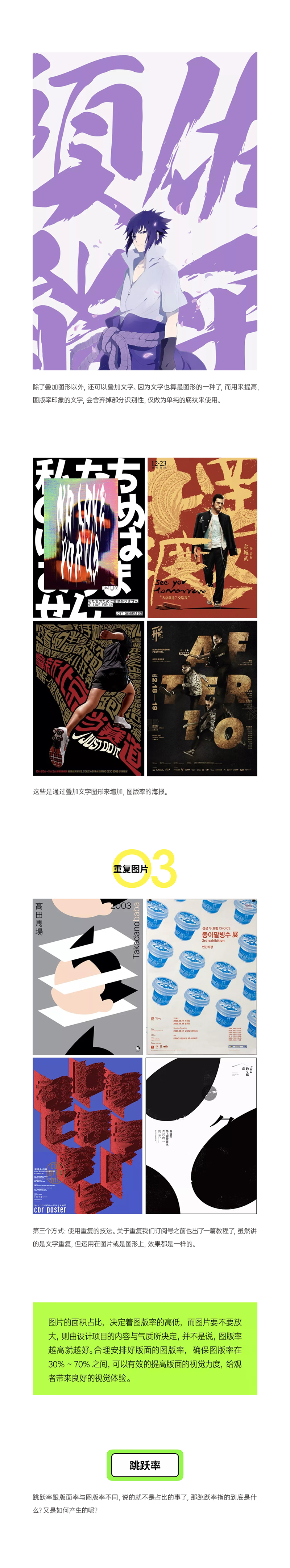 不管是版面率、图版率还是跳跃率,它们的高与低都由,画面所要传达的感觉和项目自身的气质所决定的。