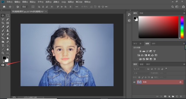 1、首先第一步打开素材,点击快速蒙版按钮,如下图▼