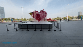 投石科技户外装置:南京南站爱心国旗70周年视错觉装置