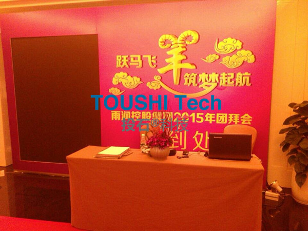 2016年12月,南京投石科技有限公司常州星河地产年会提供ipad签到多媒体技术。该项目在常州市武进区九洲喜来登酒店举行。