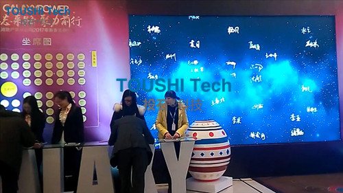 投石案例:南京大有集团年会触摸拍照签到拼logo、抽奖,地面互动投影