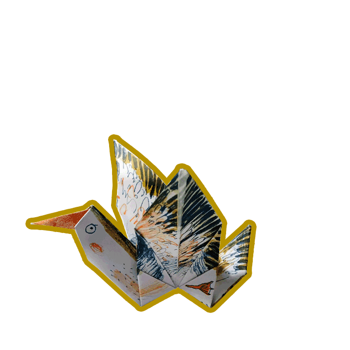 在绘本中会随书附带一本绘本儿童剧,改编自《狐狸的朋友》中的故事。儿童剧最后几页,我设计了狐狸和大雁的折纸,折纸结构源自传统千纸鹤和狐狸折纸的结构。在立体纸样上设计插画图案不比平面,一开始改结构曾产出了一批”奇行种“,后来定下这个方案的当天,我带出版社的编辑老师们每个人都折了一遍。因为有些编辑没学会折纸,所以想法并未通过,走出出版社接到了董蕾姐的语音:“就定这个方案吧,销售部的老师很喜欢,觉得这个想法很好。”