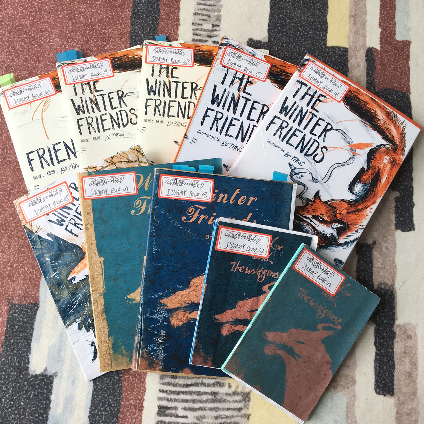 在创作过程中,有两个部分是非常辛苦的,一个是小样书阶段,大概修改了10次,包括最初的草图、黑白版草图、色彩版草图和最终修改细节的正稿小样书等。(但是基本上和最初文字的故事一致,只有里出外入的细节调整,所以总的来说也算顺利,我的其他故事也有反复修改到面目全非以至停滞的情况。)另一个是封面设计,大概设计了7版不一样的封面,最终综合多方意见才选择的这个封面。