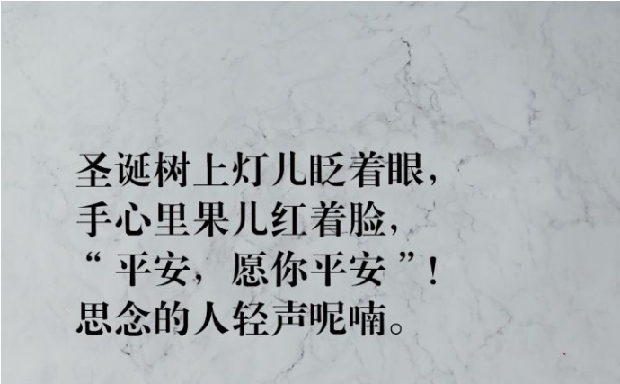 圣诞树上灯儿眨着眼,手心里果儿红着脸,“平安,愿你平安”! 思念的人轻声呢喃。