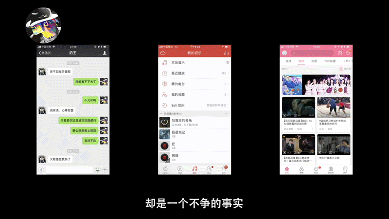 去除分割线改用留白也是极简主义的一大特征。要想知道界面中的某一个元素能不能删除,首先我们要知道它扮演了什么样的角色。分割线的作用就在于可以建立信息层级,保持内容的条理感。以朋友圈为例,如果我们把分割线去掉,那么整体内容会稍显凌乱。因此,光光删除分割线是不够的,网易云音乐6.0这次的改版中,删除分割线的同时,额外的增加留白来维持内容的层次感。
