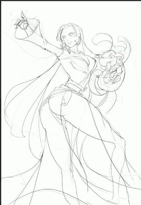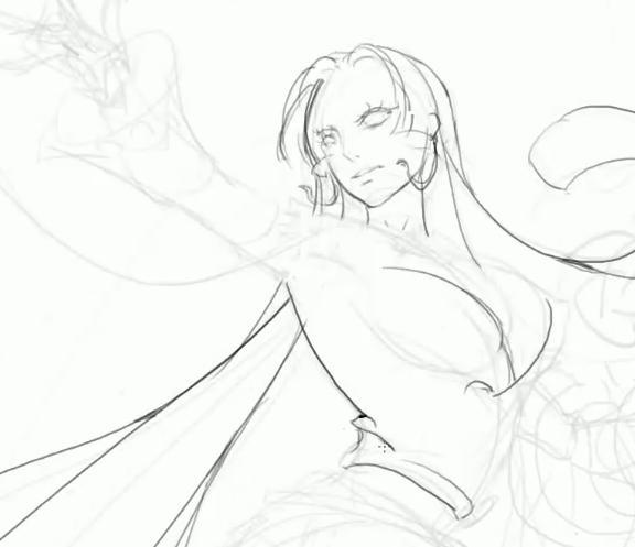 8、把整体的线条整理一下,把女帝的整体形象定下来,草稿主要是为了安排构图。最后做了一些结构上的细化和调整。