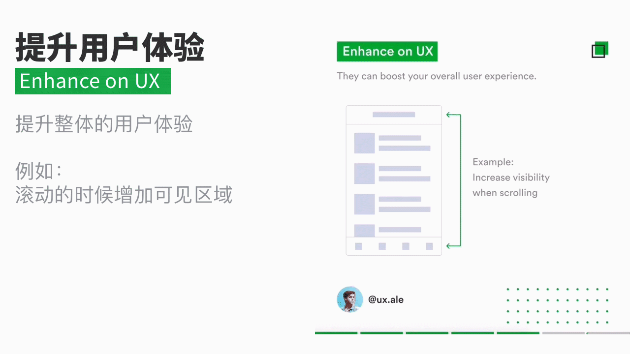 5.提升用户体验(在设计的过程中站在用户的角度去考虑,在仅有的屏幕范围内,我们可以通过动效增加可见区域,减少用户滑动次数以及创造沉浸式的浏览体验)
